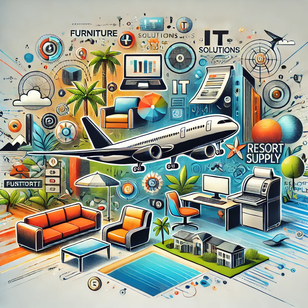 To deliver tailored, innovative solutions across Travel, Furniture, IT, Resort Supply, and Printing, enriching lives with sustainable, high-quality offerings that inspire and exceed expectations.